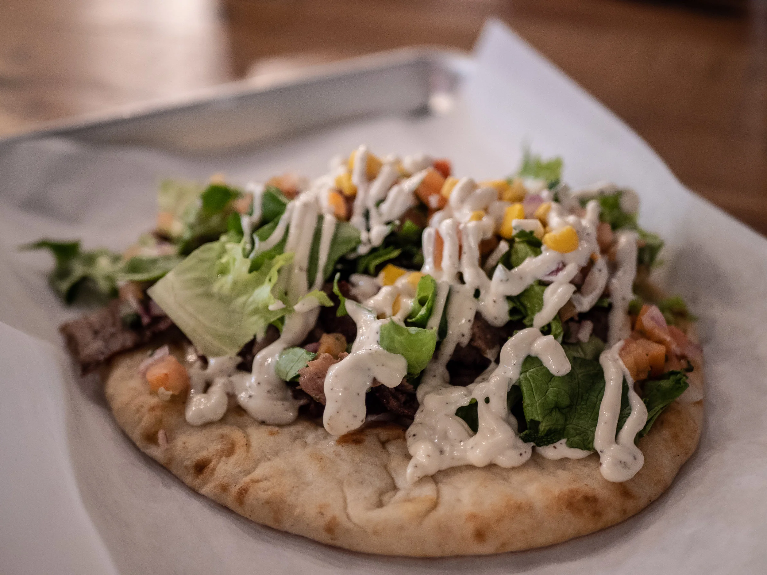 Pico de Gyro is a gyro with southwest flavor, the pico adds some spice, and the corn brings a sweetness that compliments the richer flavors. Again, the pita bread is fluffy with just the right amount of chew, and the tasty spiced gyro meat creates such an authentic eating experience and it was hand picked by the team, after trying over 14 different meat options. Shipped in from Chicago, you can’t find another shop serving up this gyro meat in the North Texas area.