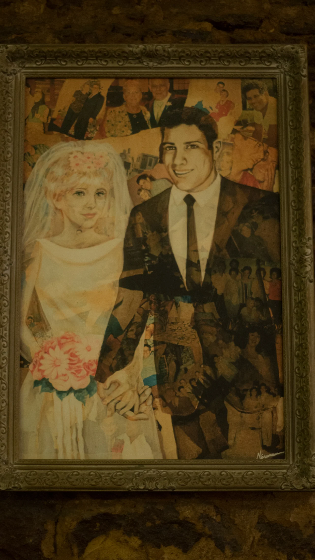 As Valentine's dates pass under the painting of Joe and his wife in their wedding outfits, they might not realize they're high school sweethearts that married on Valentine's Day. You can easily believe that they did their anniversary celebrations in grand fashion every year.