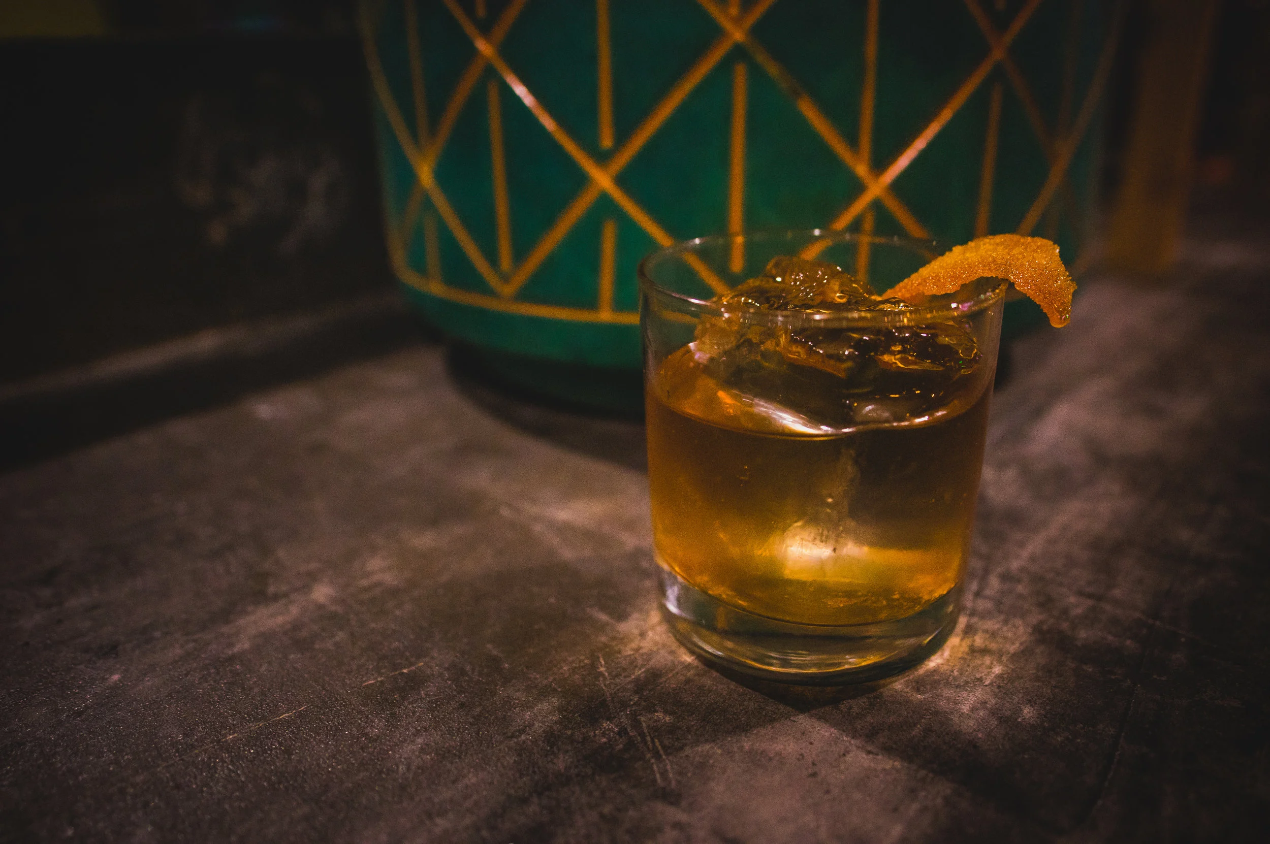 Estilo Norte - Sierra Norte whiskey, dash of Luxardo Maraschino liqueur, dash of Angostura bitters, stirred pour over large ice cube, garnished with candied orange peel