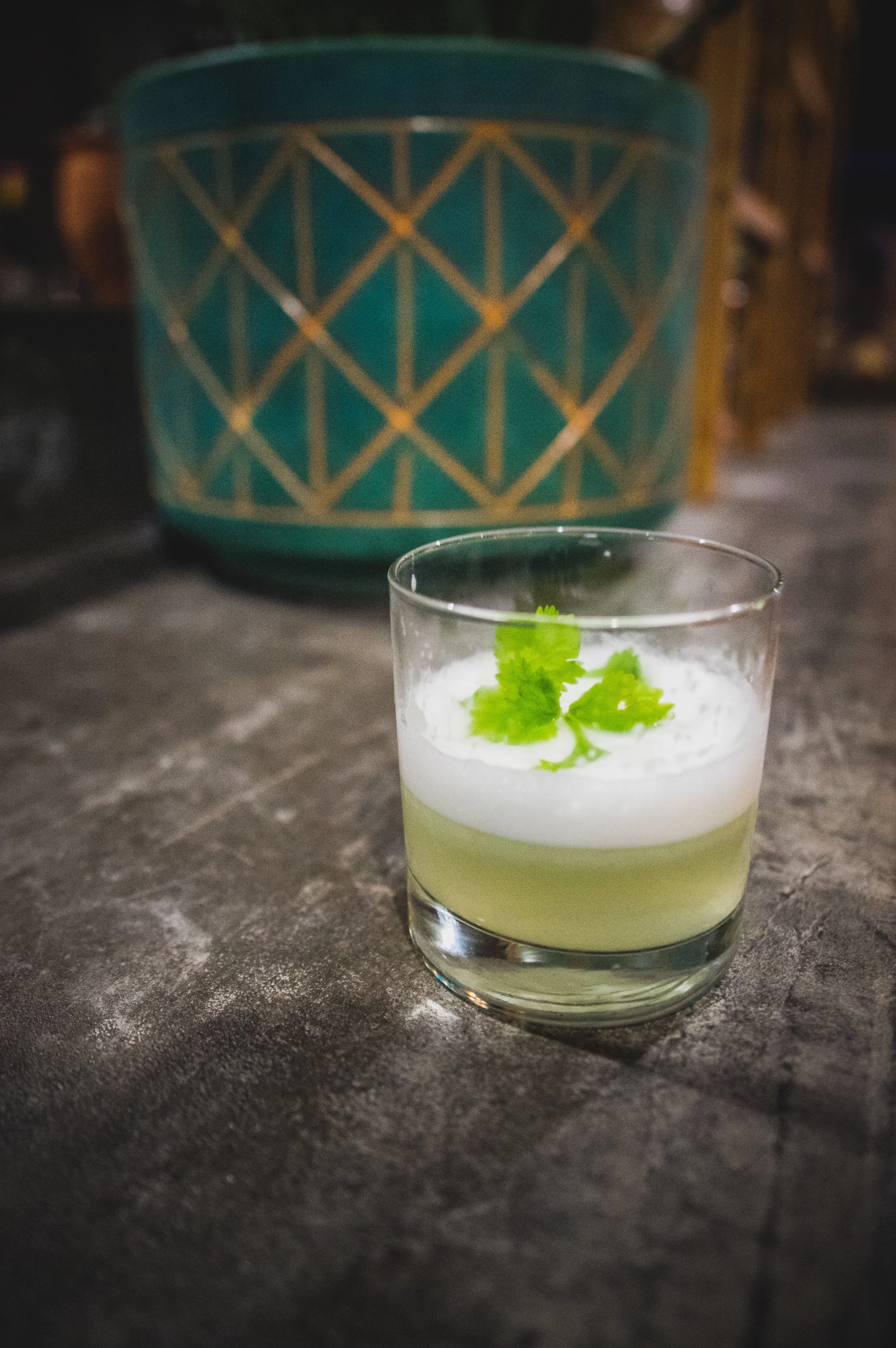 Our first cocktail of the night came paired with a delicious flan, garnished with strawberries and cream; a perfect match for the cream of the dangerously delightful cocktail. The Paraíso Perdido itself is made with flan honey and condensed milk, which provides an easy mooring to the like flavors of the dish, yet also creates a horchata-esque flavor in the cocktail itself. The coffee infused tequila is subtle, on its own, but after a bite of flan, the flavor takes center stage, reminiscent to tiramisu in the cream and coffee vibe it gives. Throw in the gorgeous star anise garnish - whose licorice flavor pairs well with the soft subtlety of the lavender - and you have a delectable intro to the menu.