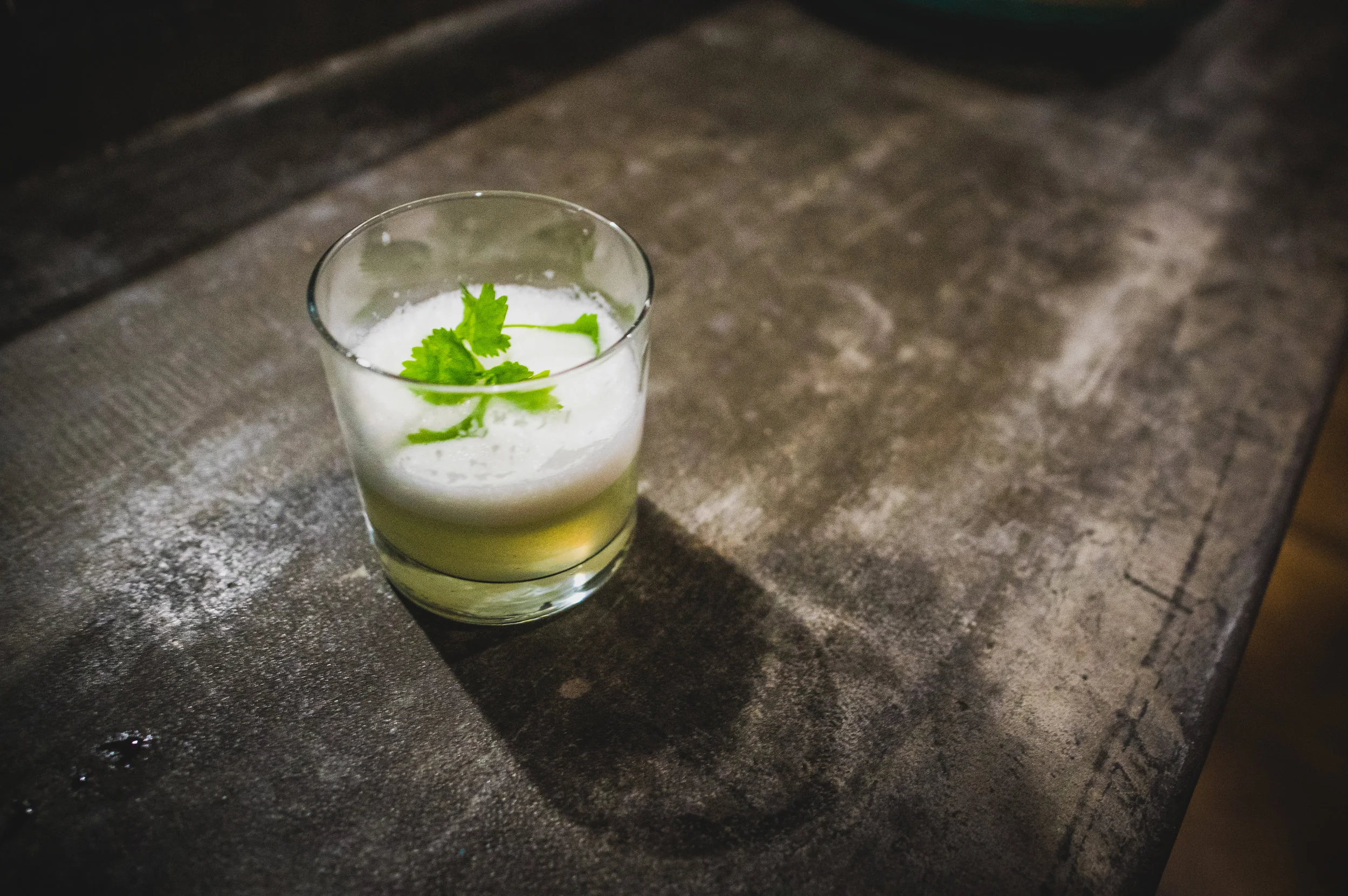 The cilantro garnish immediately entices both the eye and the nose, who then convince the mouth to partake, experiencing a nice orgeat foam that gives away to the bouquet of lime and pineapple - a perfect follow-up number to that original temptation. The tequila here feels so in its element that it hardly registers as being a hard spirit. It is artfully subtle, silken, and simple, going down like a light creamy juice more than a cocktail. This cocktail, so aptly named, wields its flavors with simple authority, needing no flourish nor gimmick to force the palate into gleeful submission.